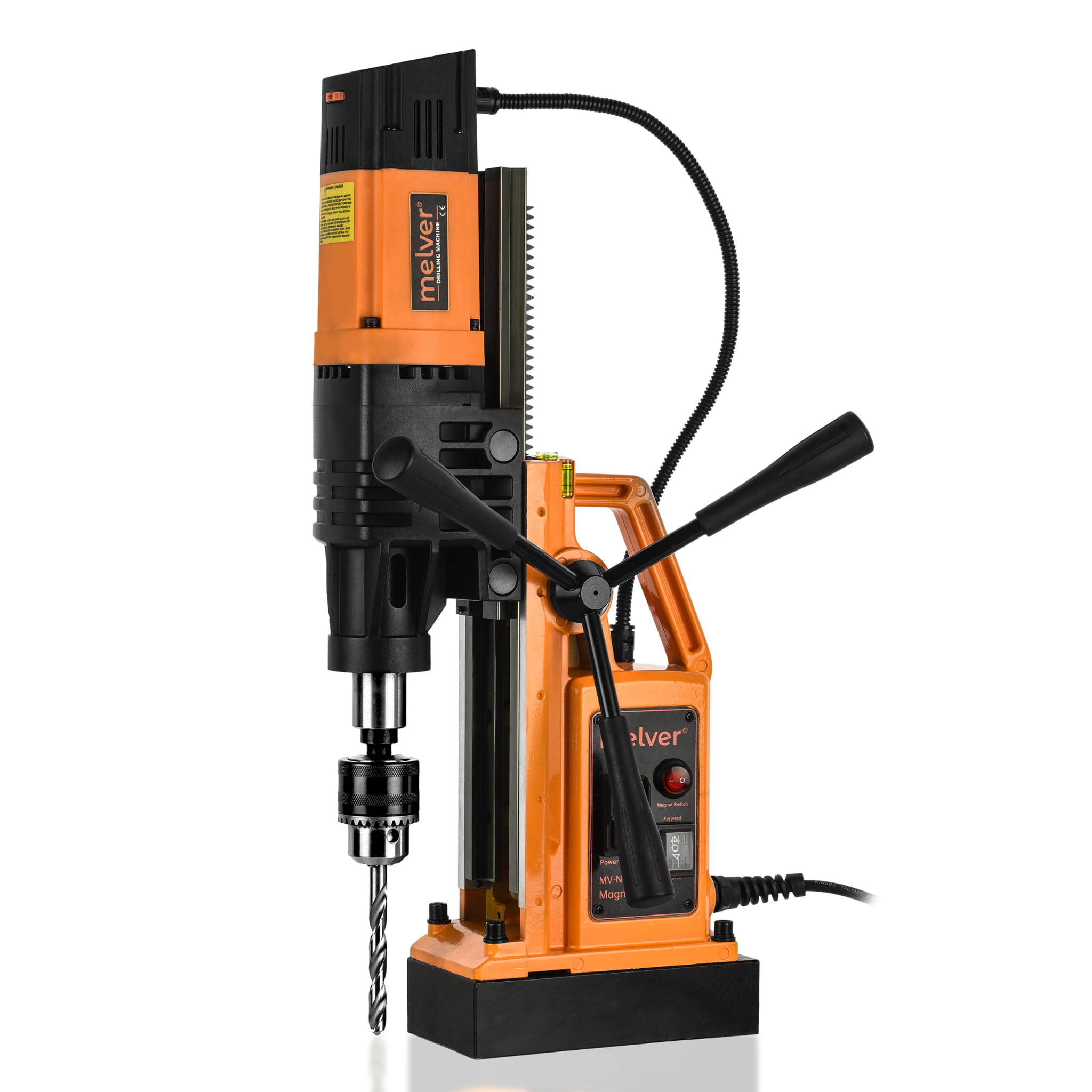 2 biegowa wiertarka magnetyczna MELVER, wyposażona w stożek Morse'a MK/MT 3 i mocny silnik o mocy 2080 W, doskonale sprawdza się w wymagających pracach.