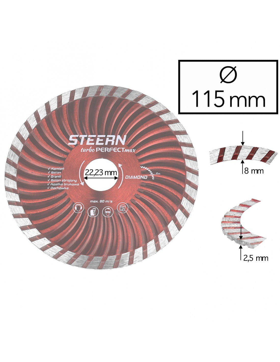 115 x 22,23 mm Tarcza diamentowa Turbo STEERN