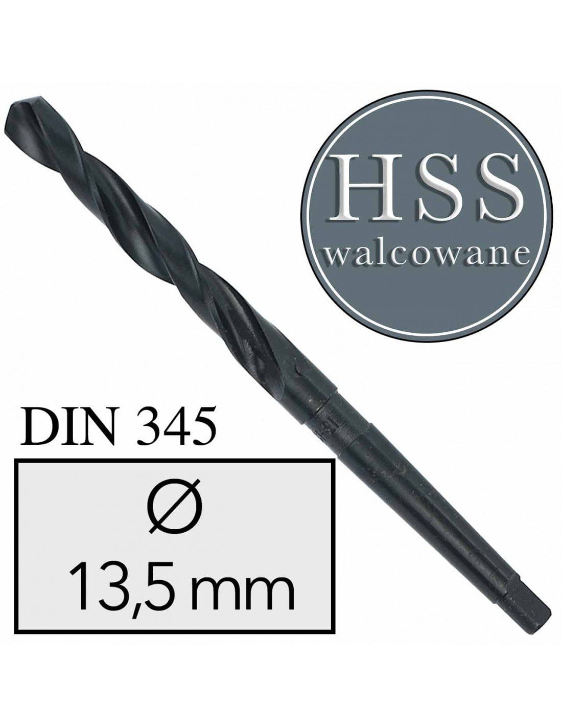 Fi 13,5 mm Wiertło do metalu NWKc HSS DIN 345 Stożek Morse'a WALCOWANE