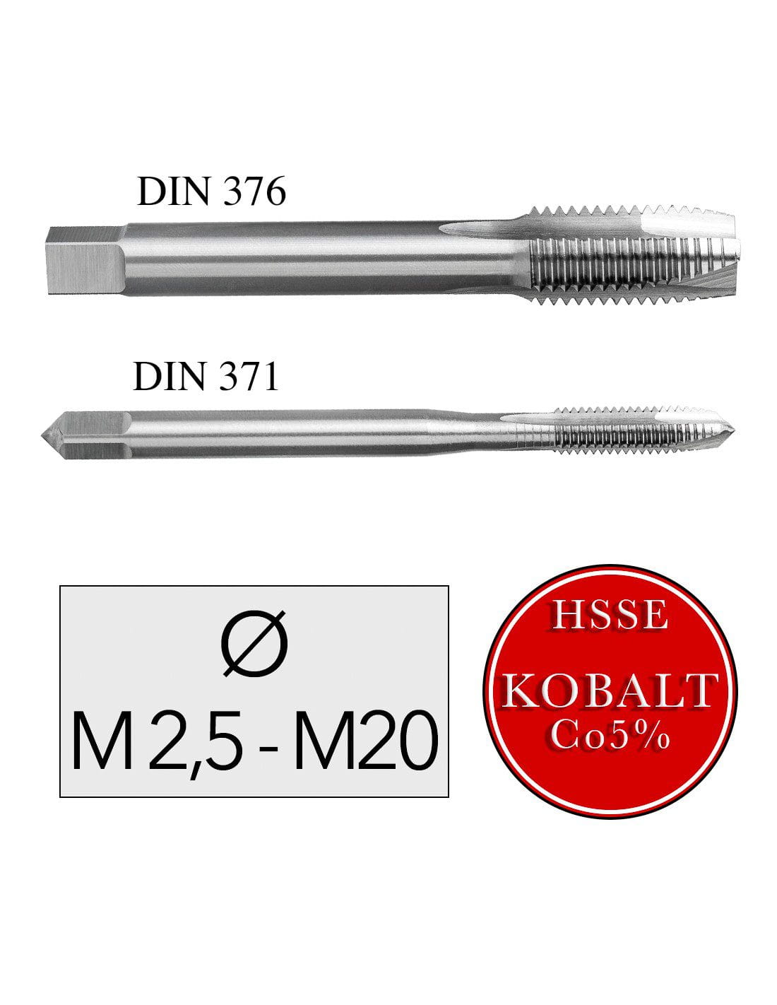 Profesjonalny gwintownik maszynowy prosty [przelotowy] z dodatkiem kobaltu HSSE Co5% do gwintów metrycznych zwykłych