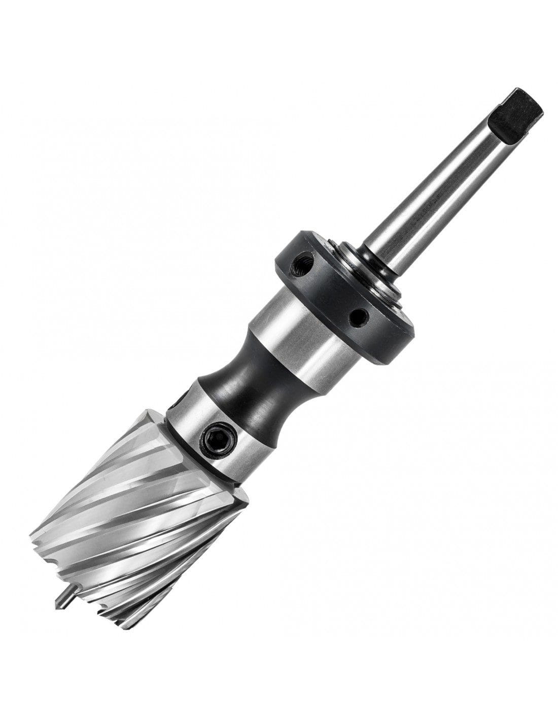 Uchwyt wiertarski marki MELVER umożliwia zamocowanie wiertła trepanacyjnego z uchwytem weldon 19mm (3/4″) w wiertarce z gniazdem na stożku Morse’a MK3 / MT3.